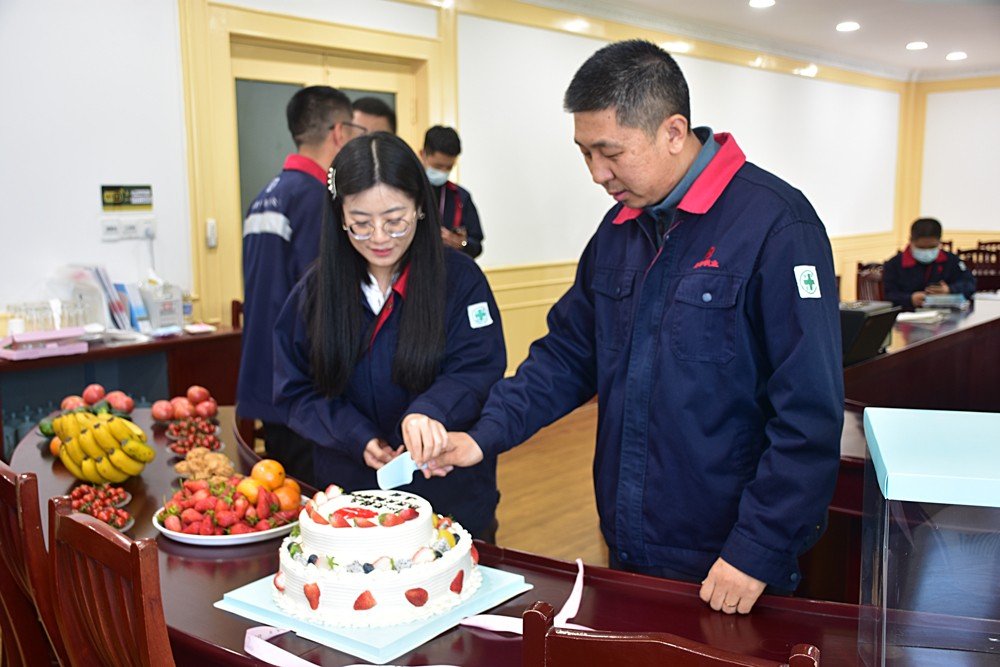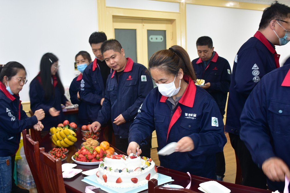發(fā)言結(jié)束,李總為新官網(wǎng)搭建工作小組成員獻上花束,并與小組成員共切蛋糕,宣告新版官網(wǎng)正式上線,并邀請在場全體同事一起品嘗,共同分享這份喜悅。